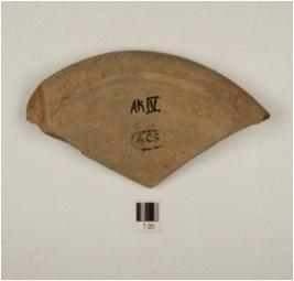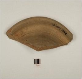 | Description / विवरण | A fragment of stand of grey ware, with upraised edge of fine fabric, showing an oxidized core and treated with grey slip. |