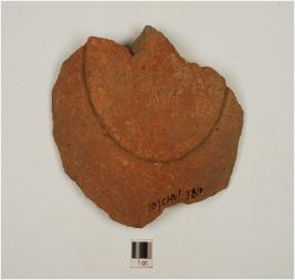 | Description / विवरण | A base fragment of bowl of black and red ware, with broken rim, disc base of medium fabric, showing an oxidized core and treated with black and red slip. |