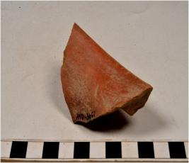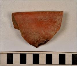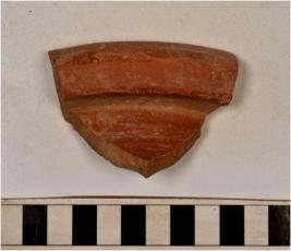 | Description / विवरण | Fragment of rim a vase of red ware with externally thickened rim, concave neck, oblique sides of medium fabric. |