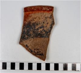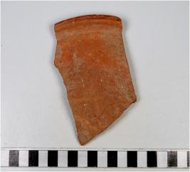 | Description / विवरण | A fragment of a bowl of red ware with flanged rim, convex profile, tapering sides, mica on surface of medium fabric. |
