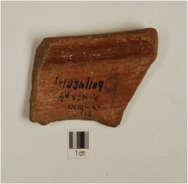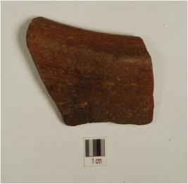 | Description / विवरण | Fragment of a dish of red ware,treated with red slip on both sides,has incurved flat top rim,and convex profile. |
