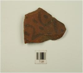 | Description / विवरण | A potsherd of red ware,having floral design with oval shaped dot in black ,of medium fabric showing an oxidized core. |