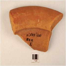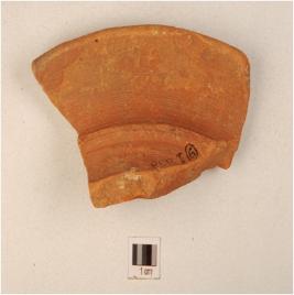 | Description / विवरण | Fragment of jar of red ware treated with red slip both sides has out curved splayed out rim concave neck with ridge and painted with horizontal band in black pigment on rim. |
