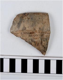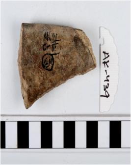 | Description / विवरण | A fragment of a bowl of red ware with incurved rim, tapering sides having incised horizontal lines and treated with cream slip. |