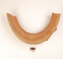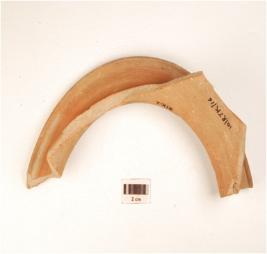 | Description / विवरण | Fragment of jar of red ware treated with red slip on the both sides has splayed out rim concave neck spreading shoulder painted with rim band and stroks in black pigment. |