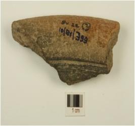 | Description / विवरण | A fragment of vase of red ware has obliquelly splayed out rim,of medium fabric and showing an oxidized core. |