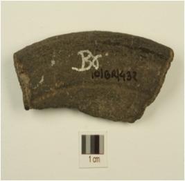 | Description / विवरण | A fragmentary vase of grey ware,out curved beaded rim,concave neck,of medium fabric,showing an oxidized core and treated with black slip. |