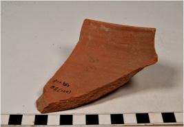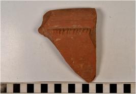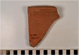 | Description / विवरण | A fragment of a basin of red ware with incurved thickened rim and tapering sides of fine fabric and sturdy texture. |