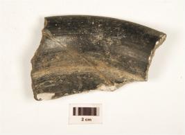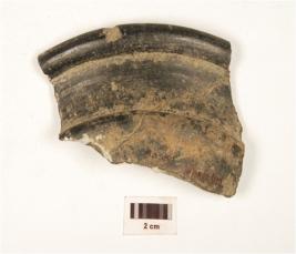 | Description / विवरण | A fragment of black-and-red ware vase, partly broken, outcurved thickned rim, ridge on shoulder, broken and mended. |