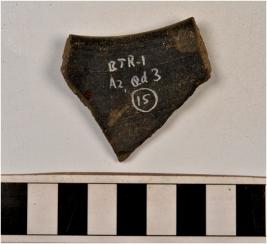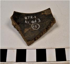 | Description / विवरण | A fragment of a pot of grey ware with externally thickened rim, oblique sides of medium fabric. |