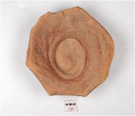 | Description / विवरण | Fragment of a red ware having disc base, treated with red slip on the exterior and of medium fabric. |