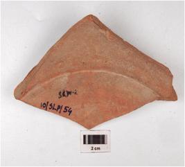 | Description / विवरण | Fragment of a red ware having prominent ridge and rusticated below exterior, treated with red slip and of fine fabric. |