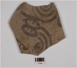 | Description / विवरण | Potsherd of painted grey ware, dots within oval shape design and concentric circles on inner surface in black pigment and of fine fabric. |