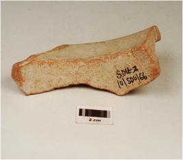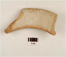 | Description / विवरण | Fragment of a red ware flared rim, concave neck, well baked, medium fabric and surface treated with red slip. |