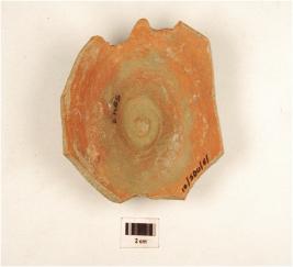 | Description / विवरण | Base fragement of a red ware , disc base, globular profile, medium fabric, well baked and red slip. |