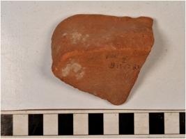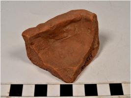 | Description / विवरण | A fragment of a terracotta votive tank of red ware of medium fabric. |