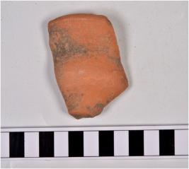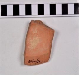 | Description / विवरण | A fragment of a miniature bowl of red ware with slightly out turned rim,straight sides and spherical body. |