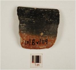 | Description / विवरण | Fragment of rim a bowl of black and red ware with incurved rim, of coarse fabric and showing an oxidized core. |