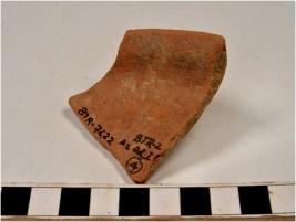 | Description / विवरण | Fragment of rim a bowl of red ware with incurved rim, tapering sides of medium fabric. |