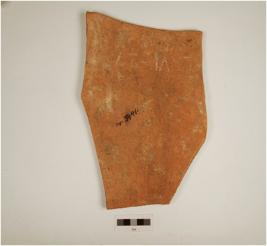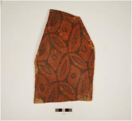 | Description / विवरण | Jar of red ware , painted with intersecting floral motif , of medium fabric, showing an oxidized core and treated with red slip. |