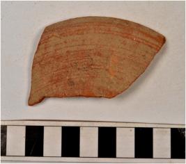 | Description / विवरण | A fragment of a bowl of red ware with featureless rim, tapering sides of medium fabric. |