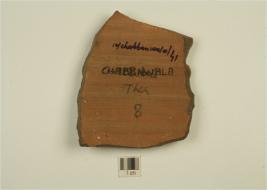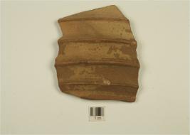 | Description / विवरण | A fragment of red ware,has multiple groove pattern on outer surface,of medium fabric and showing an oxidized core. |