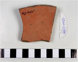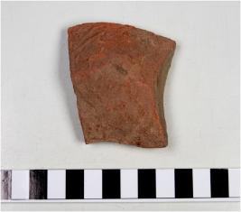 | Description / विवरण | A fragment of a base of a pot of red ware with broken flat base. |