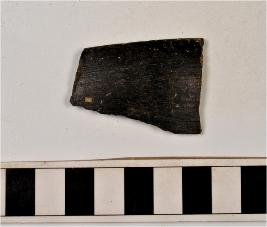 | Description / विवरण | A fragment of a bowl of black ware with featureless rim, straight sides of fine fabric. |