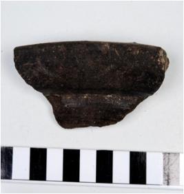 | Description / विवरण | Pot shard of black ware with flanged rim concave neck. |