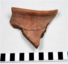 | Description / विवरण | Fragment of rim a vase of red ware with flaring rim, concave neck and oblique sides. |