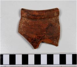 | Description / विवरण | A fragment of a red ware with collared rim oblique sides of medium fabric. |
