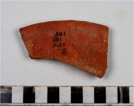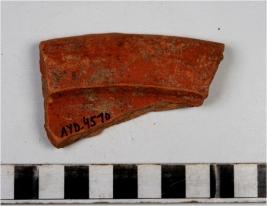 | Description / विवरण | Fragment of rim a dish of red ware with incurved thickened rim of fine fabric. |