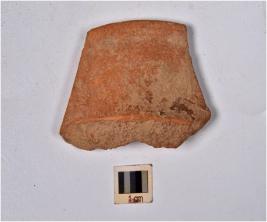 | Description / विवरण | A fragment of a vase of red ware with slightly out turned rim. |