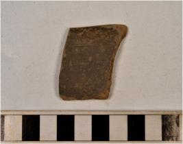 | Description / विवरण | Fragment of rim a bowl of grey ware with featureless rim, straight sides of medium fabric. |