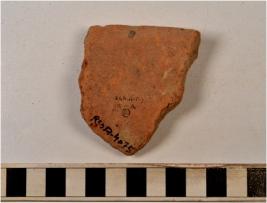 | Description / विवरण | A fragment of a vase of red ware with externally thickened rim, concave neck of medium fabric. |