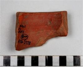 | Description / विवरण | Fragment of rim a rim of polished red ware with externally thickened rim, treated with red slip of fine fabric well levigated. |