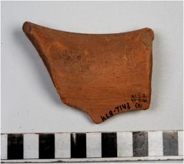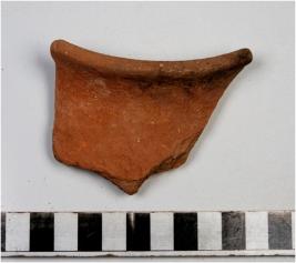 | Description / विवरण | A fragment of a vase of red ware with out turned rim, concave neck, tapering sides of medium fabric. |