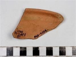 | Description / विवरण | Fragment of rim a bowl of red ware with incurved rim, tapering sides of medium fabric. |