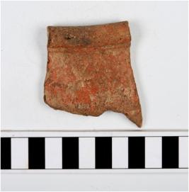 | Description / विवरण | A fragment of a vase of dull red ware with beaded rim, convex neck, straight sides. |