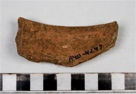 | Description / विवरण | Fragment of rim a pot of red ware with incurved rim, tapering sides of medium fabric. |