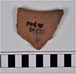 | Description / विवरण | Fragment of rim a bowl of red ware with featureless rim, straight sides. |
