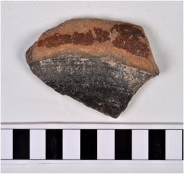 | Description / विवरण | A fragment of a bowl of black and red ware with broken rim, oblique sides. |