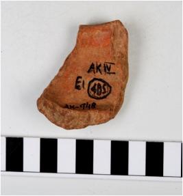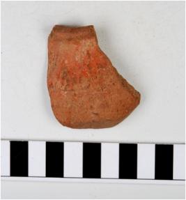 | Description / विवरण | A fragment of a miniature pot of red ware with flared rim, concave neck, tapering sides, globular body, treated with red slip. |