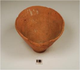 | Description / विवरण | A bowl of red ware with sharpened edge rim, tapering sides, flat base and fine fabric. |