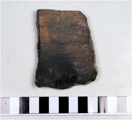 | Description / विवरण | A fragment of potsherd a bowl of red ware with featureless rim and straight sides. |