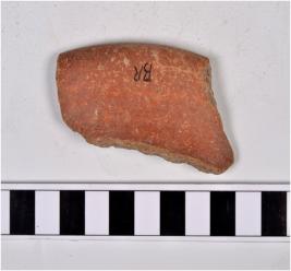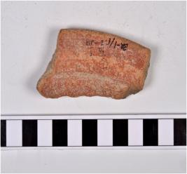 | Description / विवरण | Fragment of rim a pot of red ware with slightly out turned thickened rim showing concave neck and oblique sides. |