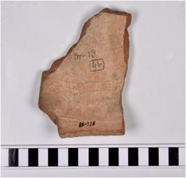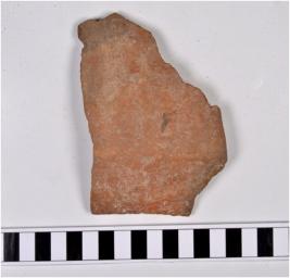 | Description / विवरण | A fragment of potsherd a dish of red ware having carination on the shoulder, and flat base. |