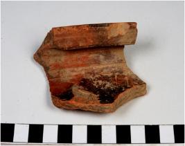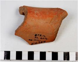 | Description / विवरण | A fragment of a vase of red ware with out turned rim, concave neck, oblique sides of medium fabric. |