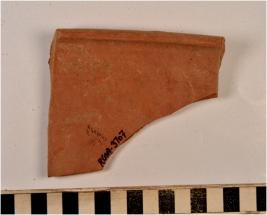 | Description / विवरण | A fragment of a bowl of red ware with incurved rim and straight sides of fine fabric fine texture well levigated. |