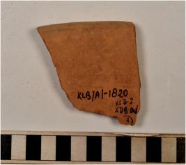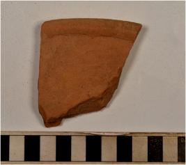 | Description / विवरण | A fragment of a bowl of red ware with thickened rim, tapering sides of medium fabric. |